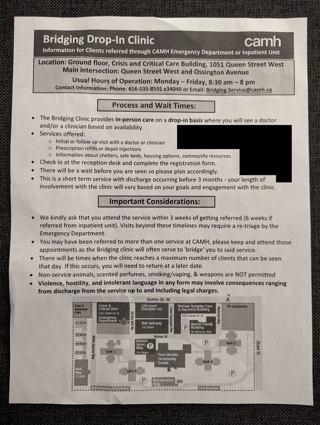 Another copy of the CAMH information sheet. I already have two copies of this sheet from previous visits, so I definitely know how to get there.