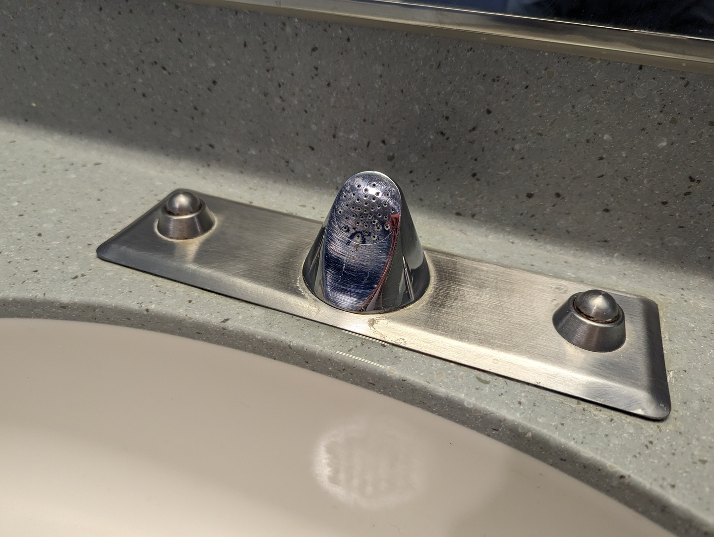Unfortunately, it appears that these faucets are sometimes connected to water supplies with low pressure. I have encountered faucets where the water does not have enough pressure to cause the stream to actually separate from the faucet, and so the water instead drips down the face of the faucet. This makes it extremely difficult to wash your hands. You can rub your hands directly on the face of the faucet, however this means touching the faucet and only works for places on your hands that can be placed directly onto the surface. The alternative is to make a little cup with your hands to collect water, and then try to splash the water from the cup onto the part of your hands you are trying to clean. It is not straightforward.