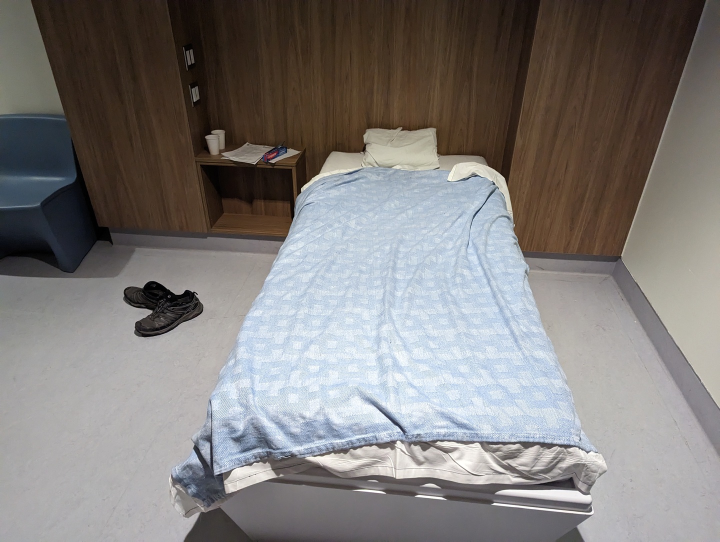 After my parents left, a nurse that was assigned to me started asking me some questions about my previous visits to CAMH and another mental health hospital in Toronto. I explained the circumstances behind each visit and tried to justify why those visits did not indicate that I had a mental illness. I am not sure what they thought, as I was still talking pretty loudly after the chat with my parents. I then sat down next to a phone charger to charge my phone, and chatted quietly with a patient that was sitting nearby. Eventually, they brought me to a private room to spend the night.
